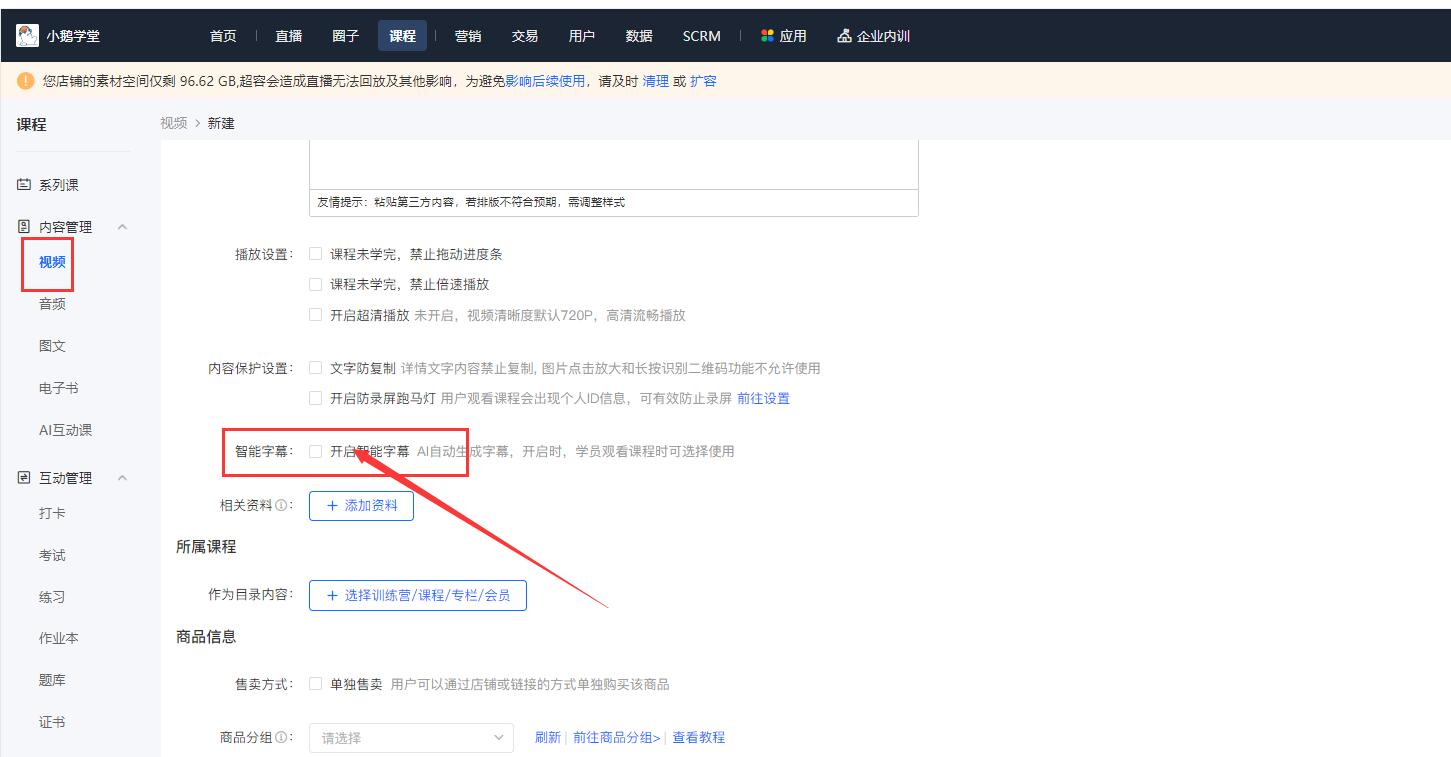 小鹅通里面的视频课程可以线上生成字幕啦!