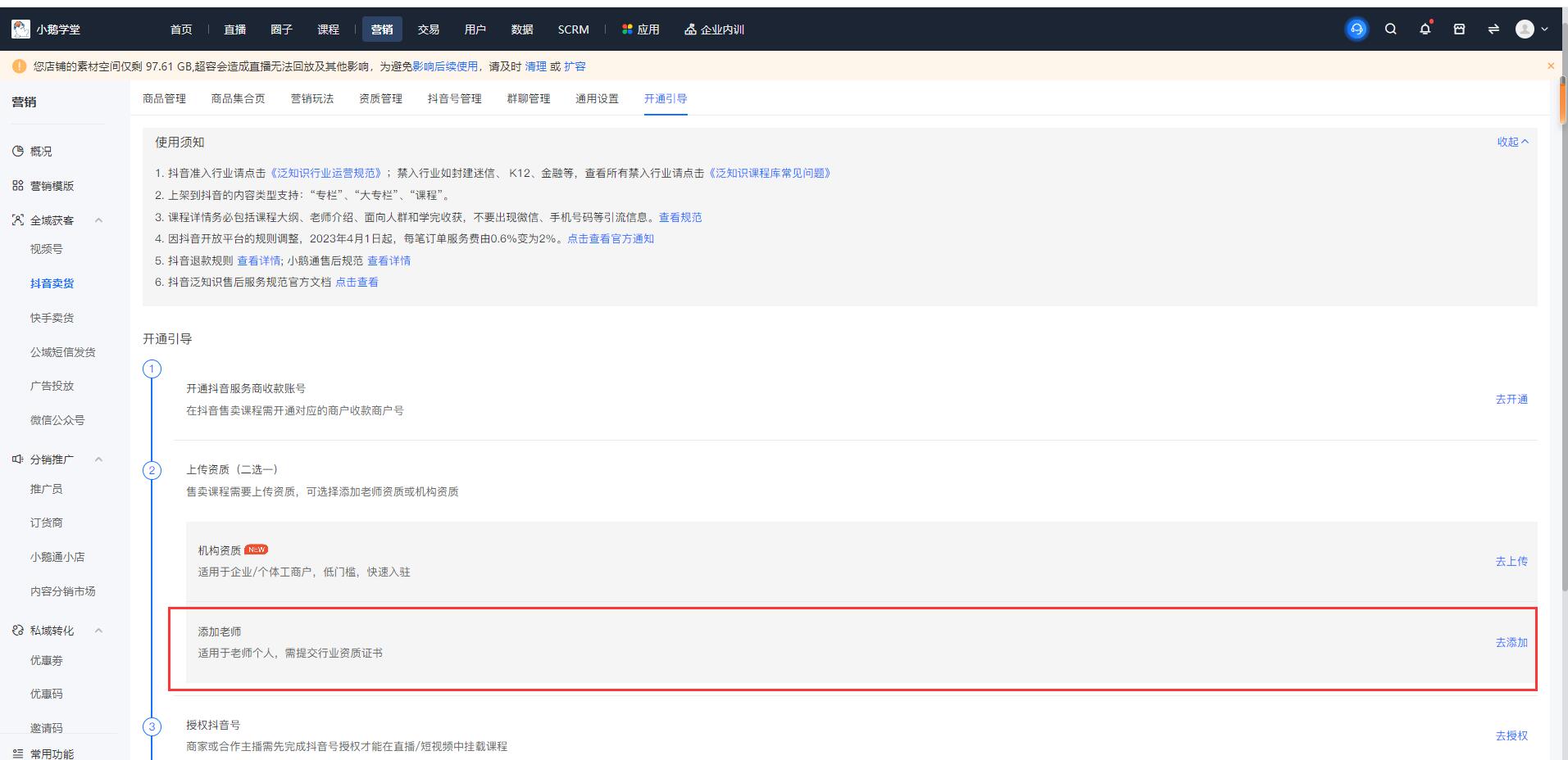 问:很多小鹅通个人店铺用户咨询,个人店铺如何将小鹅通里面的课程放到抖音去售卖? 答:小鹅通个人用户也是可以将自己的课程上架到抖音去售卖的。首先,需要老师个人有课程相关行业的资质证书,比如毕业证书(专业是课程所属类目的专业)、大型培训机构聘请证书、教师资格证书等相关证书就可以将自己小鹅通店铺里面的课程放到抖音售卖,具体可以直接咨询我们:400-0371-003。