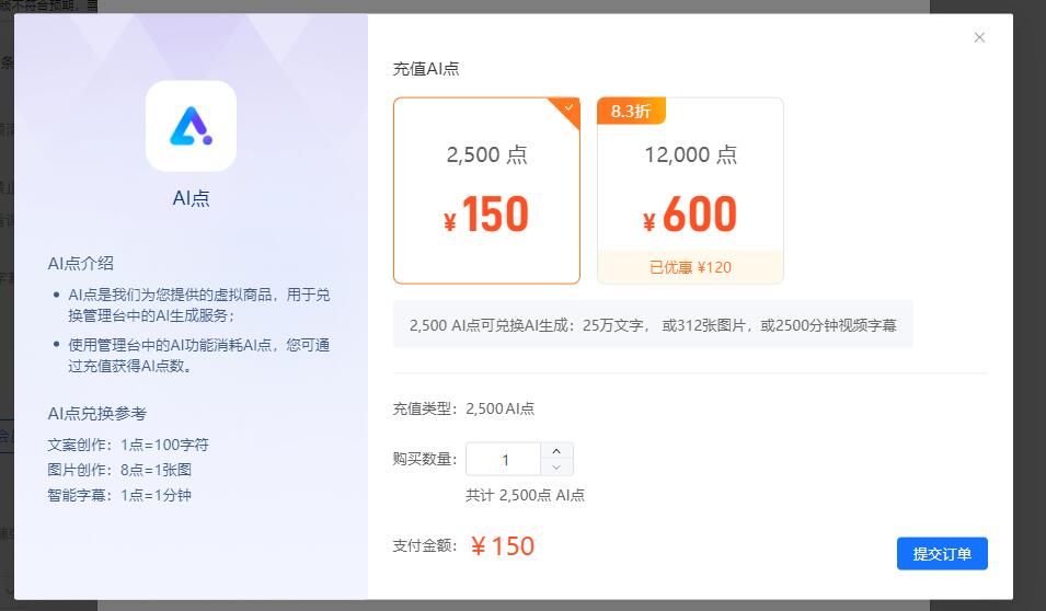 2、专业版赠送1000AI点,旗舰版赠送2000AI点,使用完了需要单独购买AI点